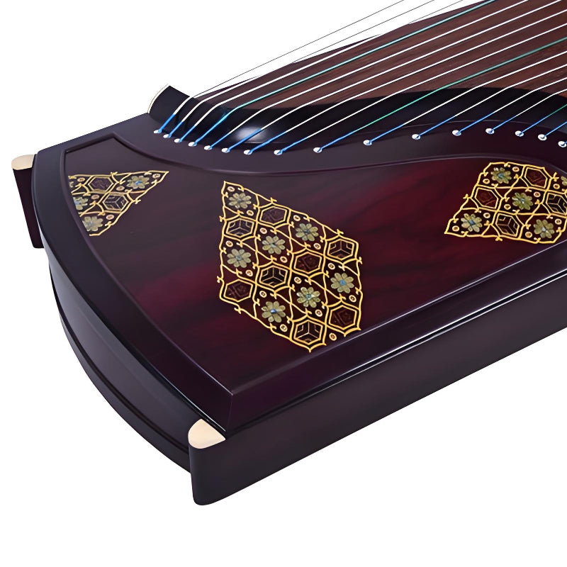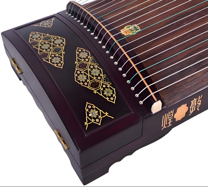 Made with select high-quality materials, the Guzheng's main body is constructed from premium rosewood, ensuring enhanced durability and resonance. The soundboard and backboard are crafted from paulownia wood, known for its light weight and excellent sound projection. The bright and clear tone produced by this Guzheng makes it ideal for both solo performances and ensemble play.