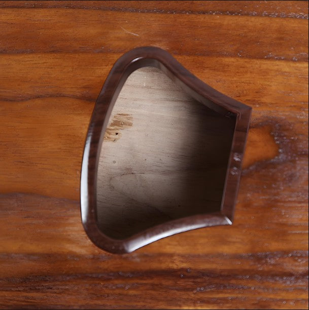 Natural Elmwood Construction: Made from aged elmwood, which naturally weathered to create a unique wood grain, providing a distinctive aesthetic and solid resonance.