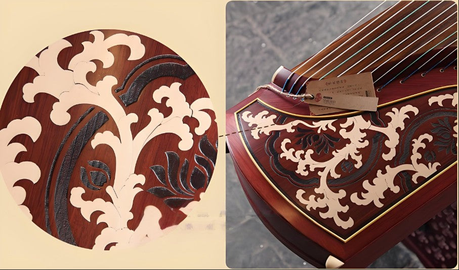 The Dunhuang Guzheng 694TT "Lotus Dream Garden" is designed for those who demand the finest sound quality and craftsmanship. This premium zither features a delicate "shallow engraving" design and a first-grade Paulownia wood soundboard, producing a rich, expressive tone that is ideal for high-level performances and intricate pieces. Whether you're an advanced player or someone looking to elevate your sound to the next level, this Guzheng offers an exceptional balance of price and performance. Equipped with top-quality Tieshu Ancient Pinewood and Dunhuang professional B-type strings, the 694TT guarantees a superb playing experience.
