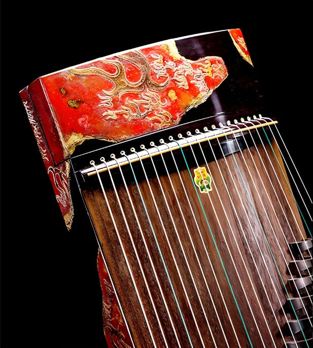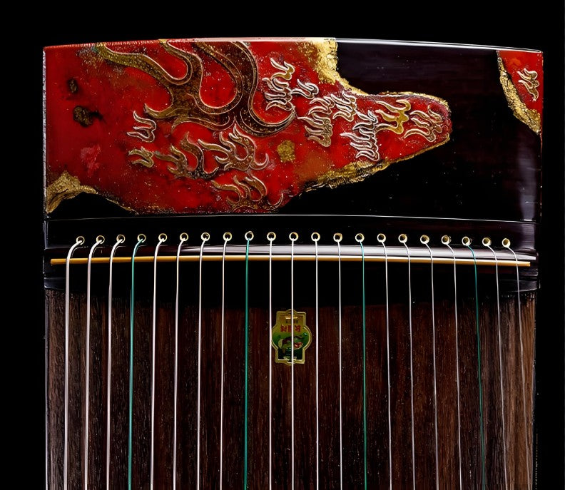 The Dunhuang nylon-wrapped strings ensure clarity in each note, while the thick yellow rosewood bridges provide optimal resonance. This guzheng not only delivers outstanding sound quality, but its elegant lacquer design, inspired by the element of fire, makes it an eye-catching addition to any collection.