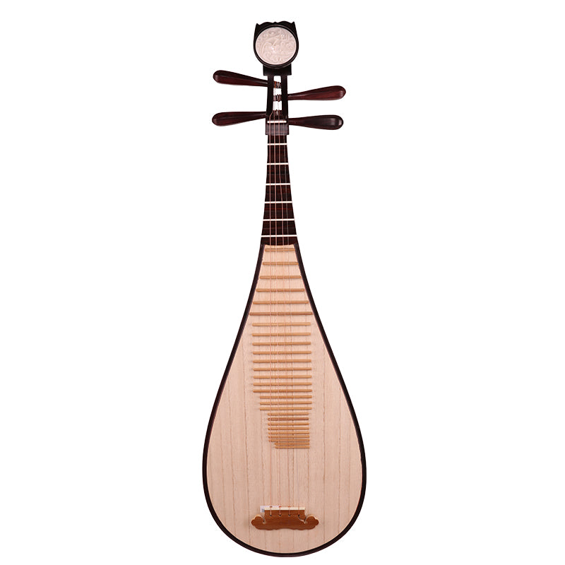 The YueHai 918 Pipa is a professional-grade Chinese lute made from Dalbergia Louvelii wood (Lüshi Blackwood), known for its dense structure, beautiful grain, and resonant tone. With its natural wood finish, wooden pegs, and the elegant LeMan Yun Cloud headpiece, this pipa combines traditional craftsmanship with exceptional tonal depth.
